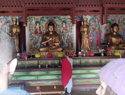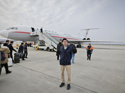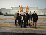 С утра опять встали рано и помчали на экскурсию в горы. Ехать 160 км. за городом дорога просто ужасная как будто едем по шпалам. Ехали часа три, спать конечно в басе невозможно. Приехали в горы, там музей подарков вождям. 170 тысяч подарков, в т.ч много из СССР и РФ. Там 170 залов, ну и сказали если каждый рассматривать то надо ходить два года. В одном из залов аж целый ИЛ 18 , подарок от СССР. в него даже можно зайти оценить обстановку. После вышли на крышу музею, посмотрели горы Затем поехали в буддийский монастырь 10 века, посмотрели, помолились)))) потом вкусный обед в крутом гостиничном комплексе В отеле отмечают свадьбы и т.п. Вот я на фото возле отеля с нашим гидом Ким Соль Дальше поехали в Пхеньян, посетили универмаг для местных, к сожалению оттуда только видео, но мясо, рыба,и всякие деликатесы типа гребешка и креветок есть. Есть даже крабовые палочки настоящие ( не имитация как у нас). Народу много, но у этих прилавков ажиотажа нет,- для местных дороговато( успел приценится к курице или утке - в районе 300 руб на наши деньги цена. Набрал домой детям сладостей- выписывают товарный чек и , внимание, отправляют в обменник, который находится прям о тут же, пара минут и у меня настоящие северокорейские деньги(до этого много читал, что иностранцам запрещено менять, видимо мы теперь не иностранцы). потом поехали в сувенирную лавку, и по полной отоварились на рубли, судя по тому что видел ,наверное годовую выручку там сделали)))) прикупили себе даже олимпийскую форму сборной КНДР Затем у нас прощальный банкет в ресторане с барбекю, которое жарили прямо у нас на столе на сковородке типа саджа, но с отверстиями. Был бекон, утка, кальмар, овощи. Очень вкусно. Наши гиды немного поддали с нами напитков, были веселенькие и пели нам на обратном пути Катюшу и другие русские песни))))) Затем финальный закуп в магазине при отеле, и опять возлияния в лобби и в нумерах. Рано утром встали , посмотрели еще раз на чирлидерш по дороге, примчали в аэропорт и улетели на ИЛ 62 во Владивосток. Прилетели в практически в обед, "поразминался" напитками под икру, на адресе известного в узких кругах выездюков, фаната Автомобилиста из Владивостока Дальше поперли на игру, традиционные шарфики с известной надписью на удачу. Удача кстати сопутствовала ,игра была огненной, сравняли практически в концовке и победили по буллитам. Ну еще и неплохая драка была в первом перерыве. Немного отметили победу, переночевали и утром отбыли практически со всеми выездюками домой на УА.